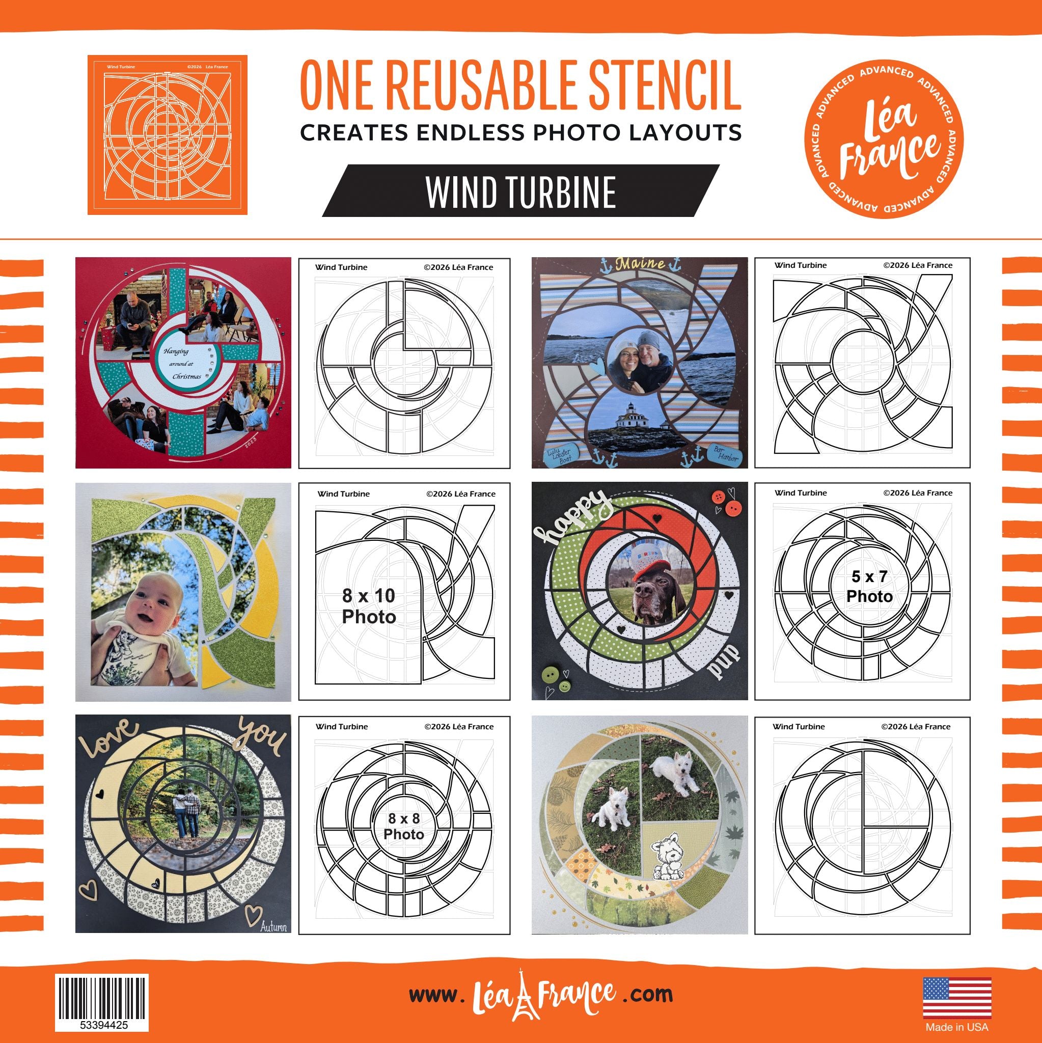 Add movement and energy to your scrapbook pages with the advanced level 12x12 Wind Turbine stencil. Its bold, flowing curves are perfect for creating dynamic layouts that showcase sports, celebrations, and everyday moments with a fun, artistic touch. This versatile, reusable stencil allows for seamless photo placement and creative embellishments.